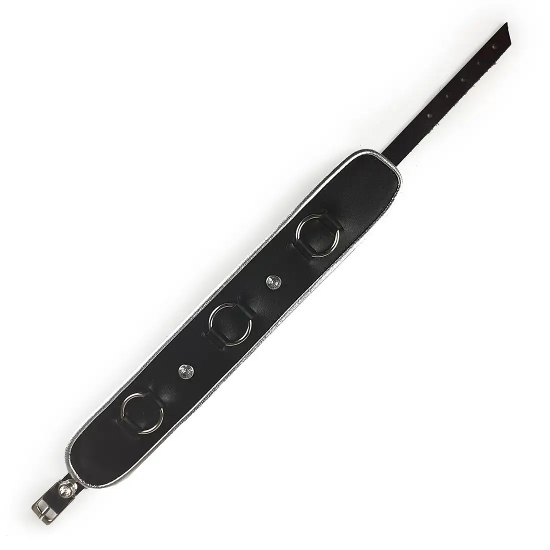 Этот ошейник с потрясающими акцентами из страз и прочным металлическим кольцом спереди красив и функционален. Кольцо можно использовать для крепления поводков или других аксессуаров для бондажа, позволяя вам полностью исследовать свою подчиненную или доминирующую сторону.