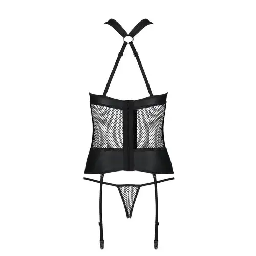 Сетчатый комплект корсет с халтером, съемные подвязки и трусики Amanda Corset black S/M - Passion