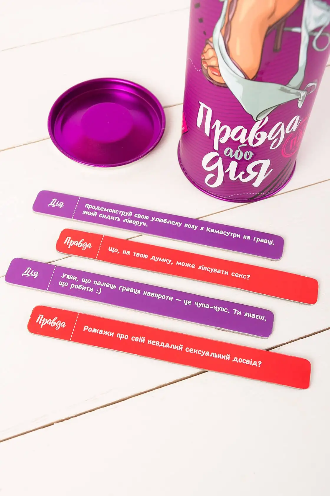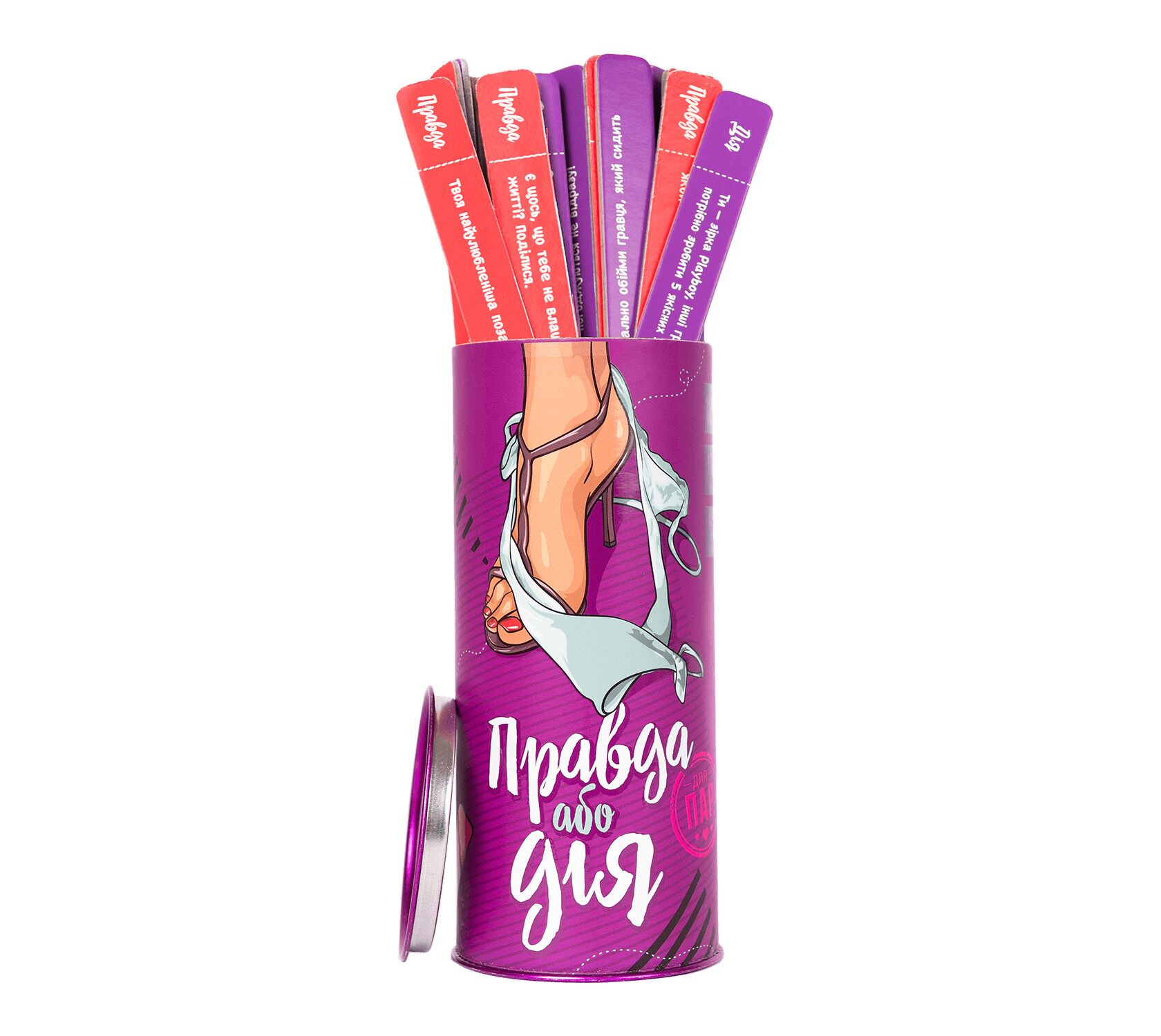Эта игра с более чем 100 различными карточками с провокационными вопросами и смелыми заданиями наверняка будет развлекать вас часами. Если вы хотите попробовать что-то новое со своим партнером или просто хотите добавить немного волнения в свою сексуальную жизнь, Эротическая игра Правда або дія (Для пар) (UA) - идеальный выбор.