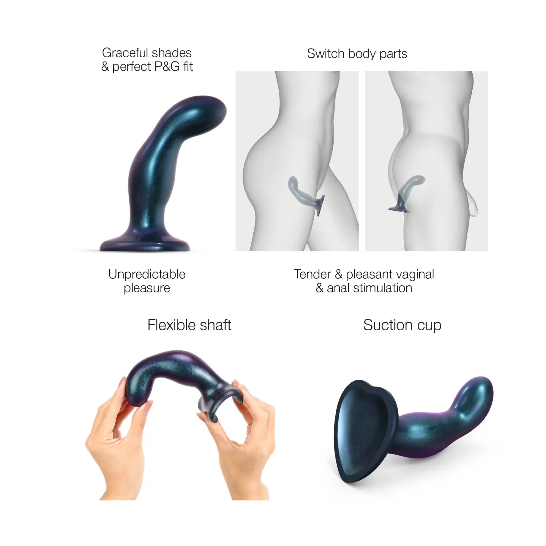 Strap-On-Me DILDO PLUG SNAKY METALLIC BLUE - M также невероятно универсален. Его можно использовать как самостоятельный фаллоимитатор или как часть ремня безопасности для еще большего удовольствия. Расклешенное основание обеспечивает безопасное и надежное использование, а регулируемые лямки позволяют настроить посадку по своему вкусу.