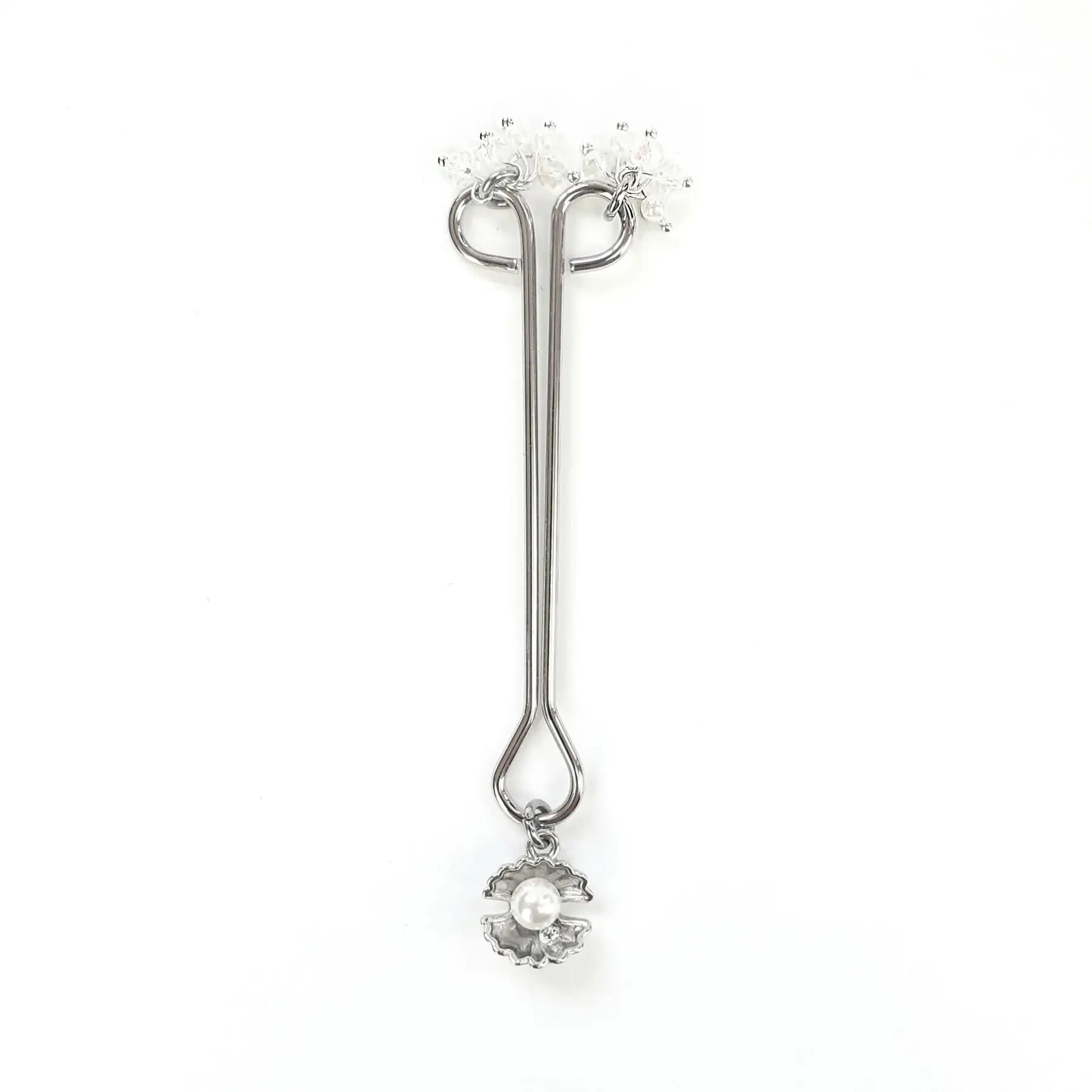 Зажим для клитора жемчужина с ракушкой и кристалами Art of Sex - Margie clit clamp, Серебро