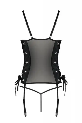 Сетчатый корсет из экокожи Passion Malwia Corset 6XL/7XL black, с люверсами и съемными пажами