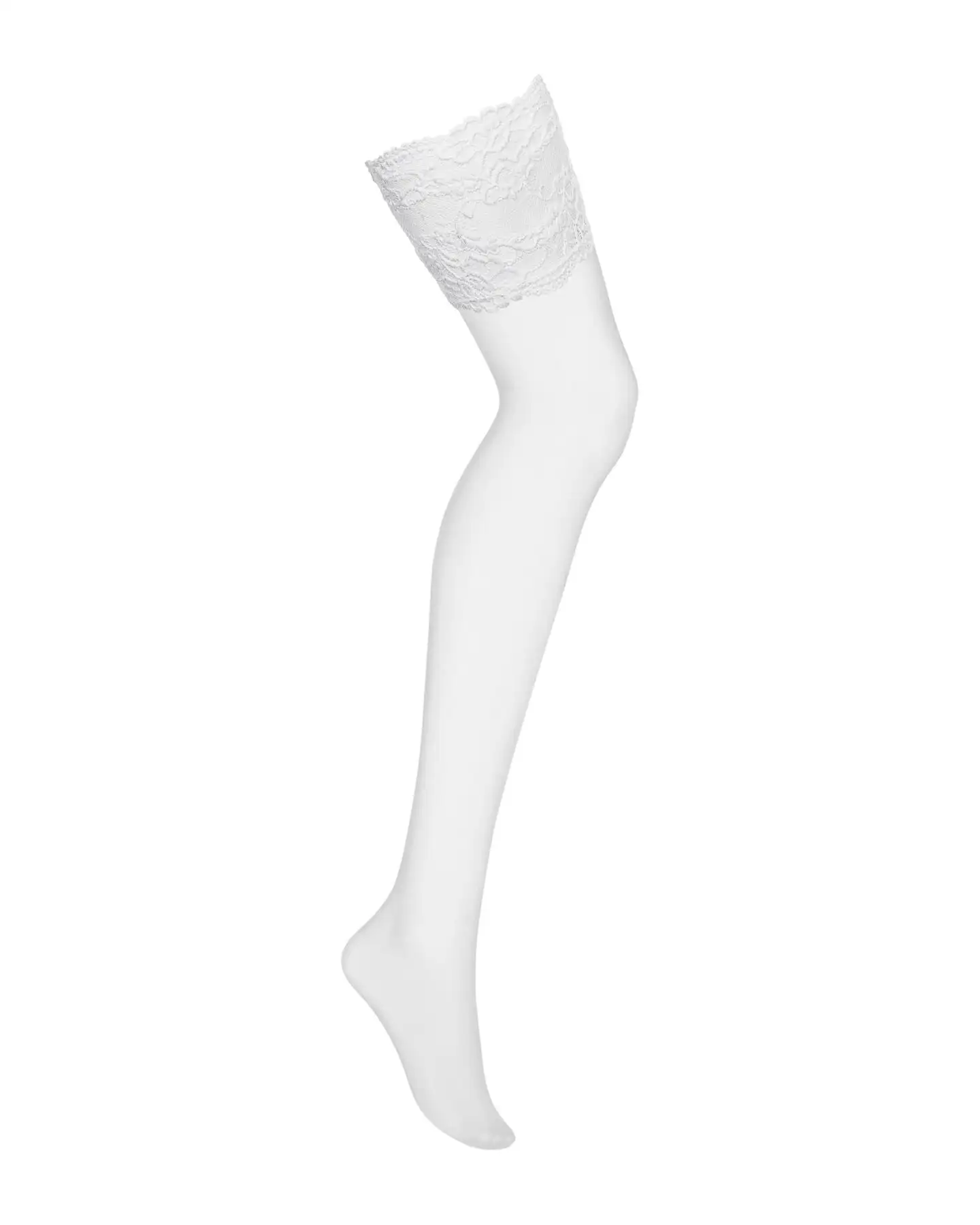 Чулки под пояс с широким кружевом Obsessive 810-STO-2 stockings L/XL, белые