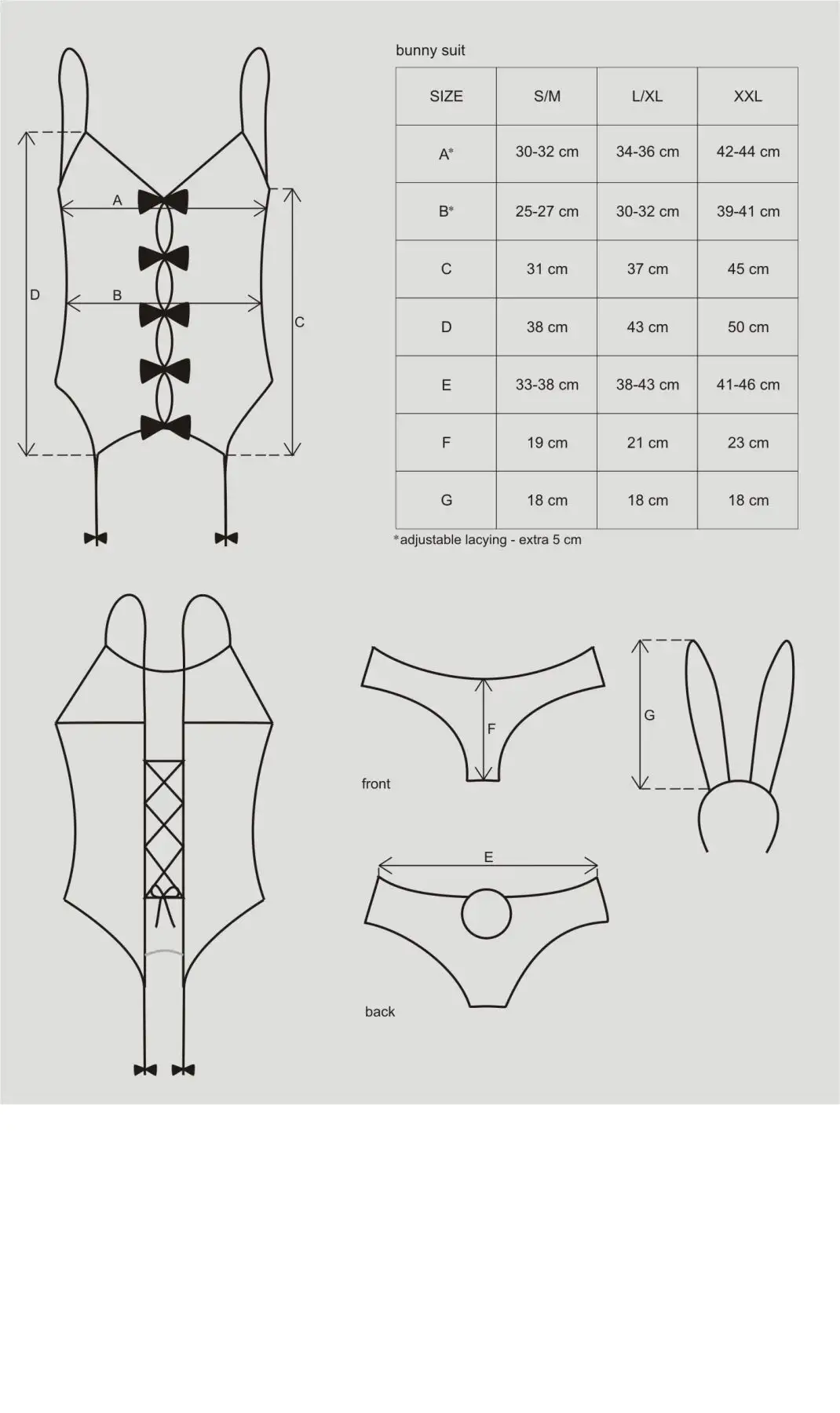 Этот костюм выпускается в размерах L/XL, которые удобно подходят для большинства типов телосложения. Он идеально подходит для ролевых игр или просто как забавное дополнение к вашей коллекции нижнего белья.