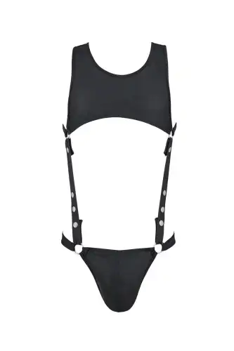 Мужское кожаное боди Passion 056 Adam XXL/XXXL Black, заклепки