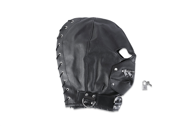 Этот головной шлем, изготовленный из высококачественной кожи, прочный и удобный. Молния спереди позволяет легко надевать и снимать ее, а шнуровка сзади обеспечивает плотную посадку и не соскальзывает во время игры. Шлем закрывает всю голову, оставляя открытыми только глаза для дополнительной сенсорной стимуляции.