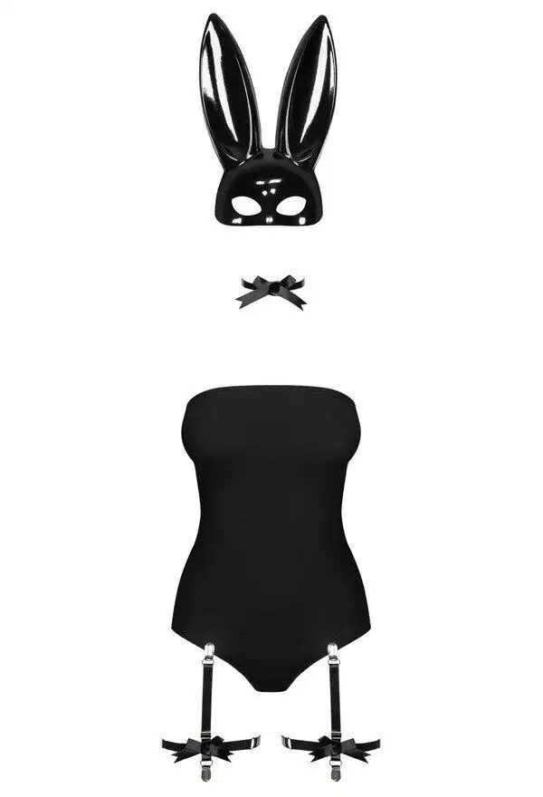 Эротический костюм кролика Obsessive Bunny costume L/XL, black, боди, чокер, гартеры, чулки, маска