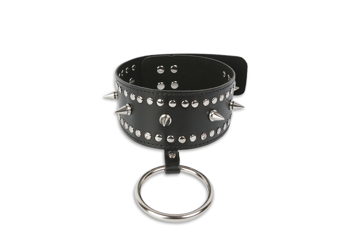 Изготовленный из мягкой, но прочной кожи, этот ошейник оснащен острыми металлическими шипами, каждое прикосновение которых вызывает мурашки по спине. Металлическое кольцо в передней части ошейника добавляет дополнительный элемент волнения — используйте его как точку крепления поводков или других средств ограничения свободы или просто наслаждайтесь ощущением того, что ваш партнер водит вас за собой.
