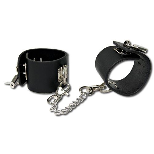 Наручники из искусственной черной кожи, соединены между собой металлической цепочкой. Великолепно подходят для пар увлекающихся ролевыми играми. Кожа достаточно мягкая и приятная на ощупь, поэтому даже во время самых жарких моментов вы избежите натираний и покраснений.