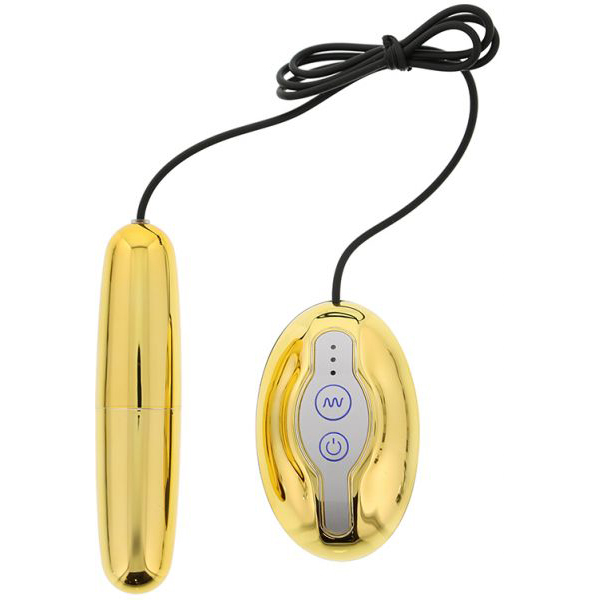 Золотистая вибропуля PREMIUM RANGE VIBRATING ROCKET с многоскоростной вибрацией с выносным пультом управления.