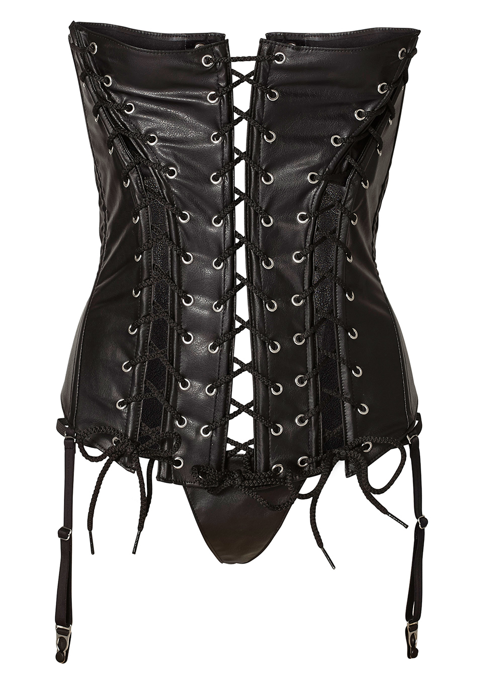 Фетиш и БДСМ культура включает в себя не только различные виды получения удовольствия. Обязательным нюансом является и внешний вид партнеров, который настраивает участников на определенный сексуальный настрой. Такая фетиш-одежда, как корсет Scorse Cordones Tanga Black от производителя Avanza, позволяет женщине чувствовать себя сильной, женственной и красивой. Создайте свой образ искусительной леди-вамп, который покорит вашего мужчину навсегда. Корсет имеет необычный дизайн с тремя шнуровками. С помощью центральной вы можете смоделировать посадку, утянув талию и сделать ее намного уже. Корсет снабжен подтяжками под чулки, поэтому дополняйте свой образ сексуальными аксессуарами. Чтобы добраться до желанного тела, вашему мужчине придётся изрядно потрудится над шнуровками и застежками. Такая фетиш-одежда подойдет под любой тип фигуры, и сумеет подчеркнуть все достоинства.