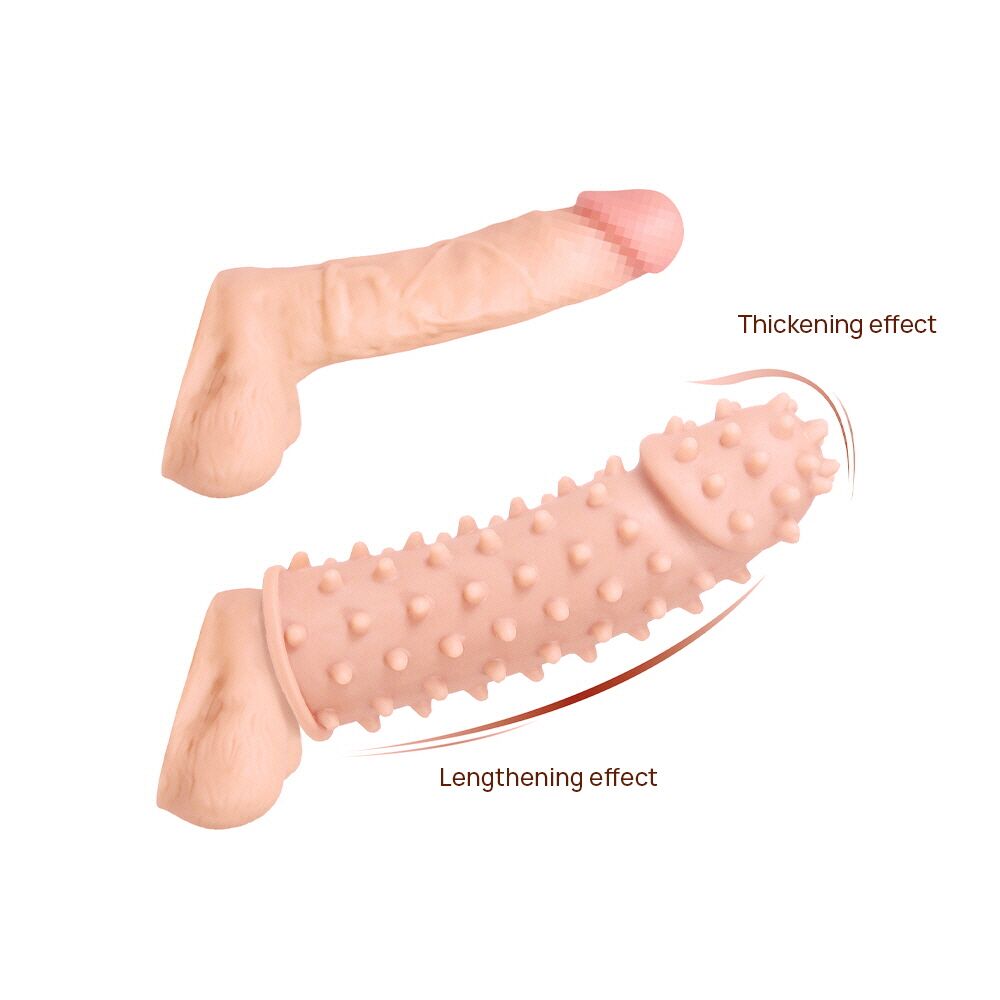 Насадка для увеличения члена с шипообразным дизайном. Идеально точно повторяет все изгибы и очертания пениса. Очень удобная и приятная на ощупь. Внешняя сторона имеет множество прожилок и маленьких шипов. Они будут нежно массировать вагину вашей девушки. Лучше этих ощущений ваша любовница никогда не переживала. Она будет безгранично благодарна Вам за такой волшебный секс. Ее возбужденные стоны будут сводить с ума и девушка не сможет себя больше контролировать, полностью отдавшись своему партнеру.