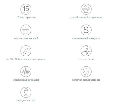 - Особенности - имеет инновационный дизайн, закруглен для удобства использования, стимулирующая структура, очень тихая и мощная вибрация. Влагонепроницаемое.