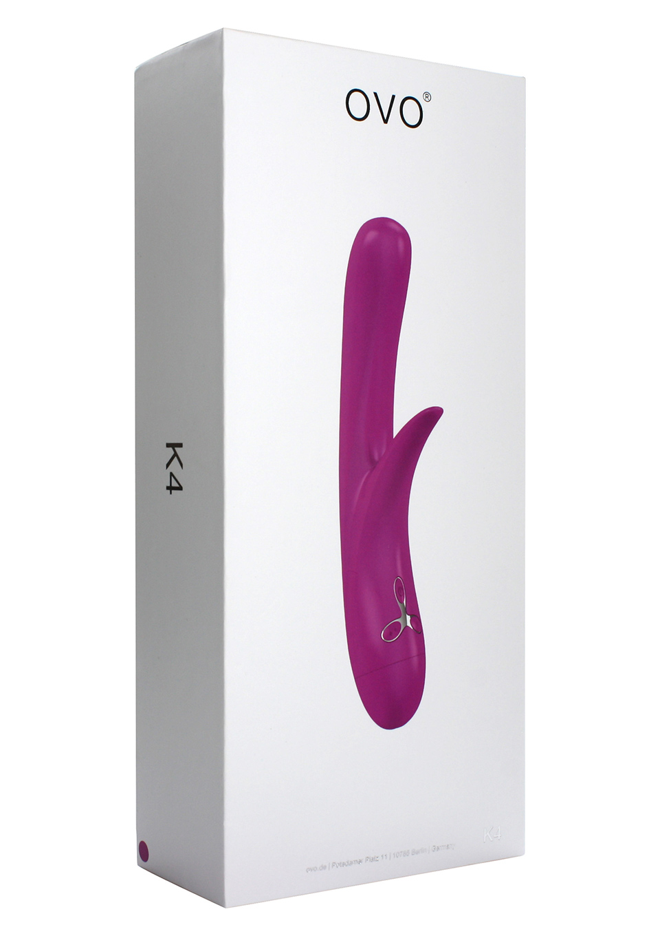 Вибратор OVO K4 VIOLET. C дополнительным отростком для стимуляции клиторальной эрогенной зоны. Приятный на ощупь, имеет 5 режимов вибрации, влагонепроницаемый. Стильный дизайн. Общая длина - 23 см, рабочая длина - 10,5 см, диаметр - до 3,5 см.
