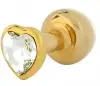 Само по себе украшение создано в виде сердца, которое обрамлено золотом и обладает диаметром в самом широком месте – 3 см. Для создания агрегата производитель использует уникальный материал. По мнению экспертов, он является совершенно безопасным для человеческого организма. К основным преимуществам такой анальной пробки можно отнести: