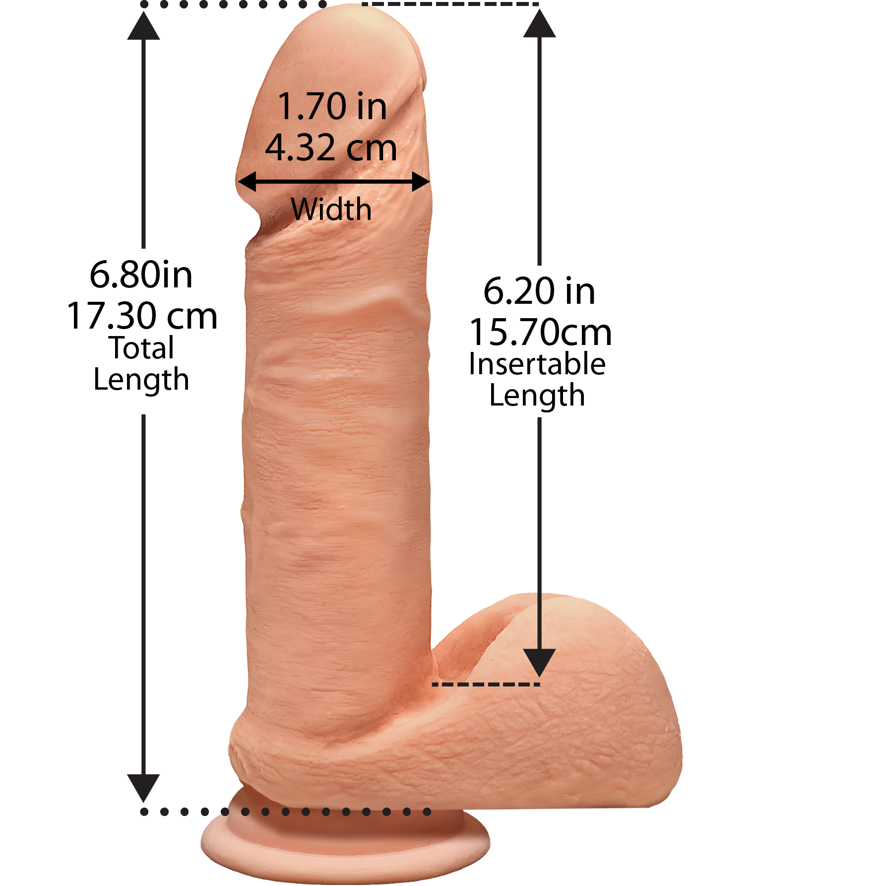 - Приятный размер. Аксессуар представлен в эрегированном состоянии и полностью готов к чувственному проникновению. Общая длина составляет 17.8 см, а рабочая 16.5 см. Диаметр модели 4.5 см. Такие приятные размеры обеспечивают хорошо ощутимую стимуляцию эрогенных зон и легкое достижение яркого оргазма.