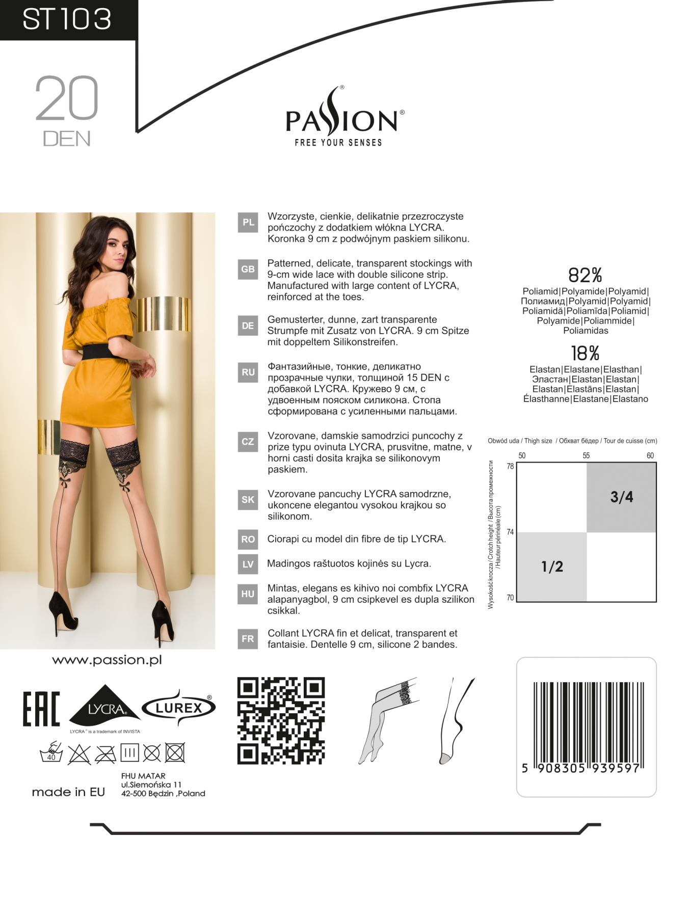 Желаете подчеркнуть красоту и изящество ножек? Устроить приятный сюрприз для партнера и завоевать сердце любимого мужчины? Тогда вам необходимы чулки ST103 1/2 beige – Passion от польского бренда. Шикарный и универсальный аксессуар хорошо сочетается с повседневной одеждой и вечерними платьями, костюмами для ролевой игры или кружевным бельем.