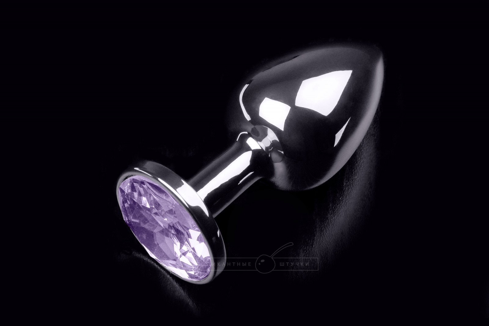 Маленькая серебристая анальная пробка с кристаллом, 7х3 см, фиолетовый