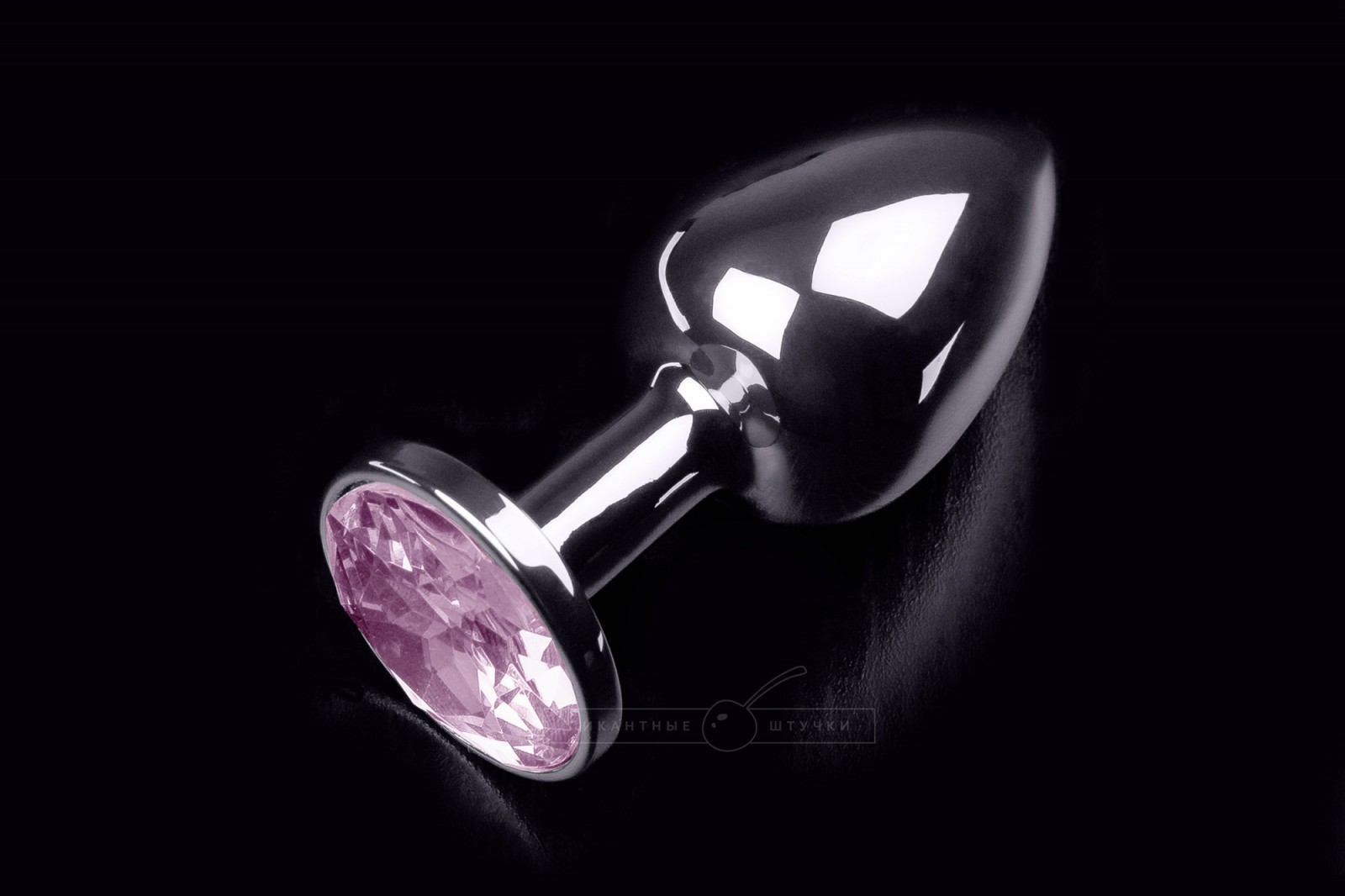 Маленькая серебристая анальная пробка с кристаллом, 7х3 см, розовый