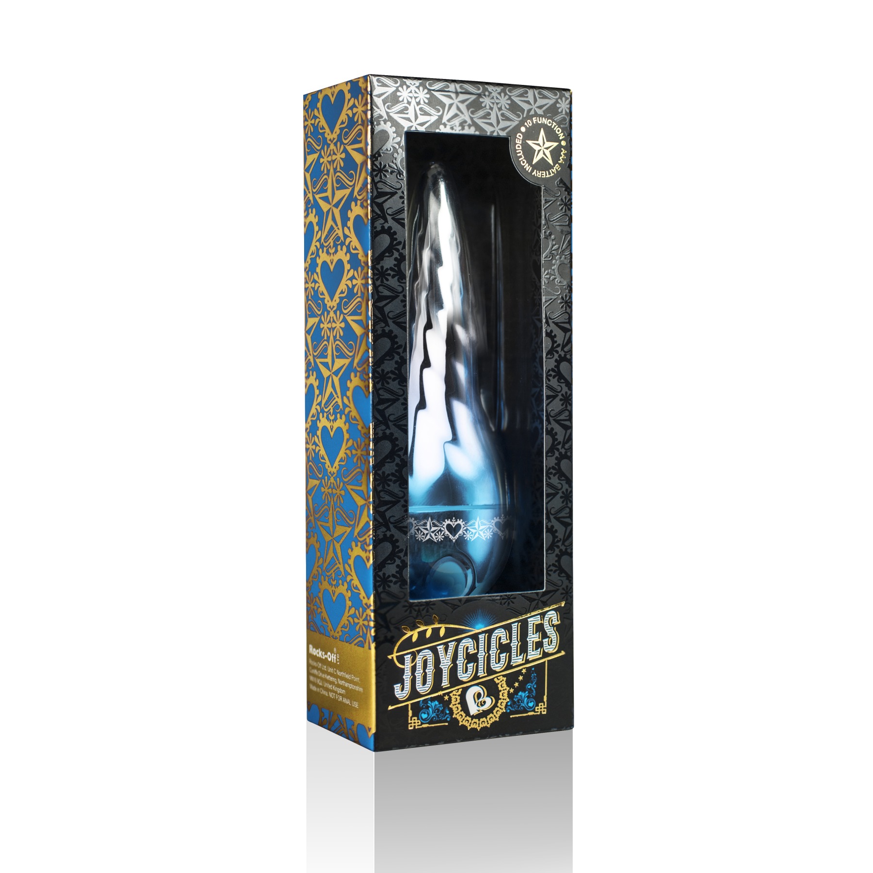 Вибратор Rocks Off Joycicles Blue реализуется в стильной дизайнерской упаковке, которая дополнена золотым тиснением и интересным орнаментом в виде переплетенных сердец, звезд и цветов. Столь необычному сюрпризу будет рада каждая девушка. Поэтому не медлите и оформляйте покупку прямо сейчас!