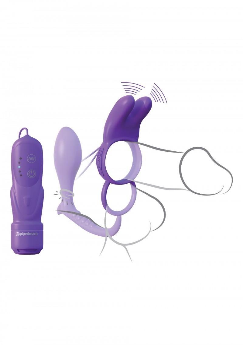 Эрекционное кольцо Ass-Gasm Vibrating Rabbit на пенис и мошонку с анальным стимулятором фиолетовый с