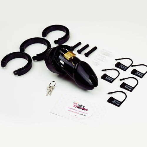 Игрушка в комплекте имеет 5 специальных колец и зажимов, благодаря которым можно регулировать диаметр и силу зажима исходя из ваших потребностей. Агрегат в комплекте имеет 2 ключа и медный замок. Простое устройство позволит сковать половой орган партнера, но при этом не доставит неприятных ощущений.