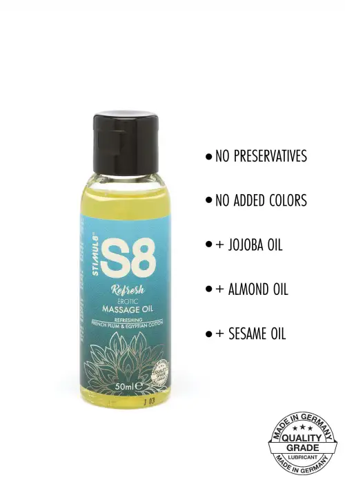 S8 Massage Oil Box, роскошный набор из трех массажных масел, которые выведут ваше расслабление и удовольствие на новый уровень. Каждая бутылка содержит 50 мл высококачественного масла, идеально подходящего для массажа всего тела или интимных моментов с вашим партнером.