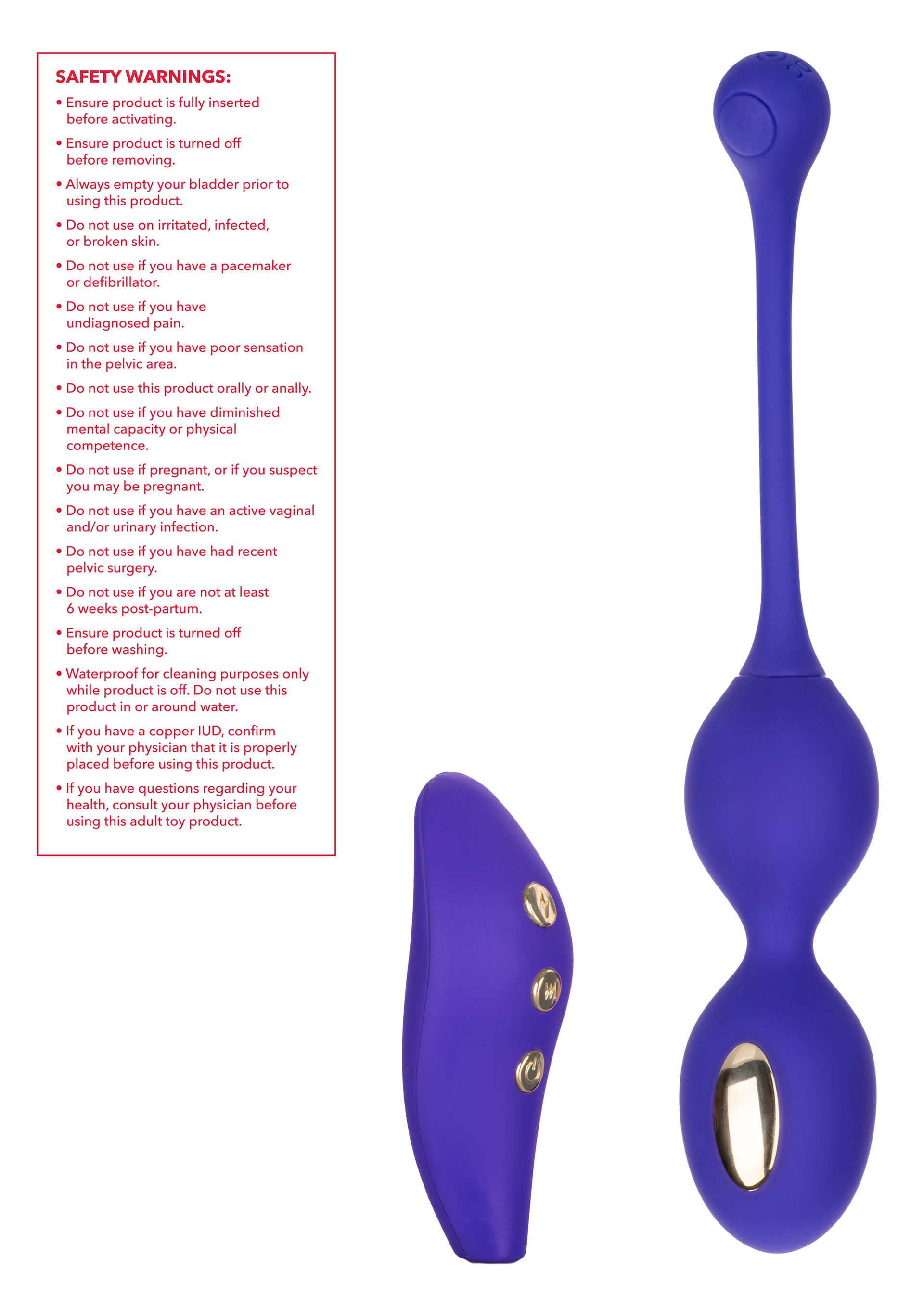 Это уникальное устройство идеально подходит для тех, кто хочет укрепить мышцы тазового дна и в то же время насладиться захватывающими ощущениями. Благодаря мощным двигателям и индивидуальным настройкам этот тренажер поможет вам достичь новых высот удовольствия! Так зачем ждать? Приготовьтесь испытать интенсивную стимуляцию, как никогда раньше — закажите двойной тренажер Кегеля CalExotics E-stim уже сегодня!