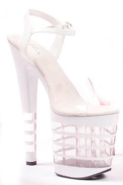 Женские туфли на прозрачной платформе белого цвета. Высота каблука 20 см, высота платформы - 10 см.