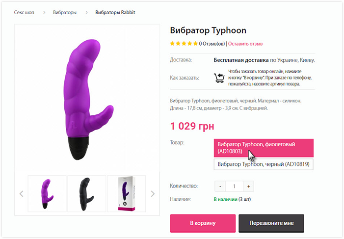 1. Выберите товар на сайте.* Для заказа Вам понадобится артикул, который указан под названием товара.