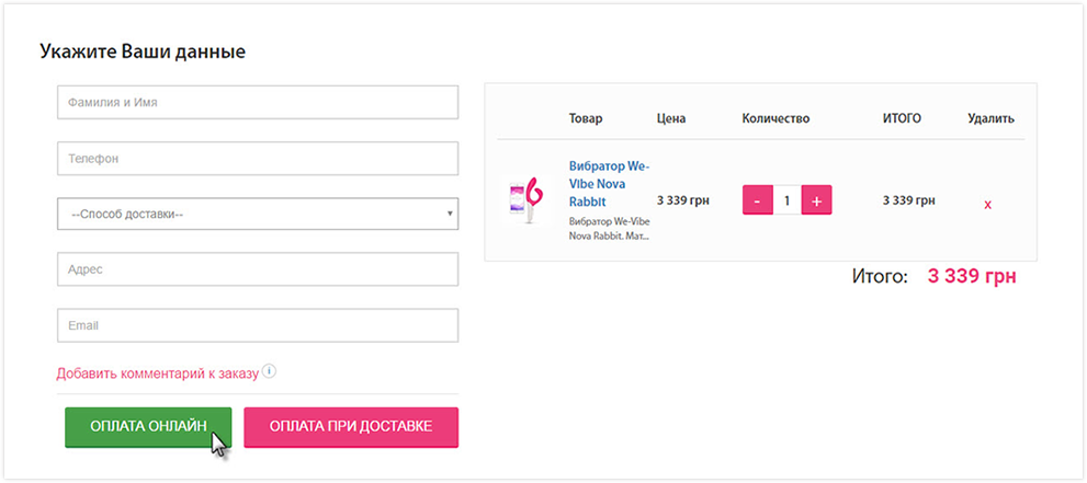 4. Введите необходимые данные и выберите способ оплаты. Подробнее о способах доставки и оплаты Вы можете узнать здесь